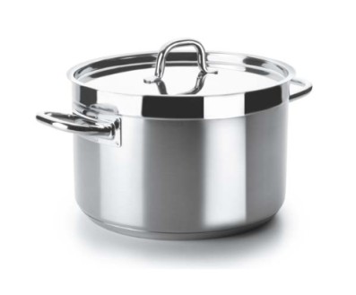 La totalidad de la pieza (cuerpo, asas y mangos) está elaborada en acero inoxidable 18/10.
