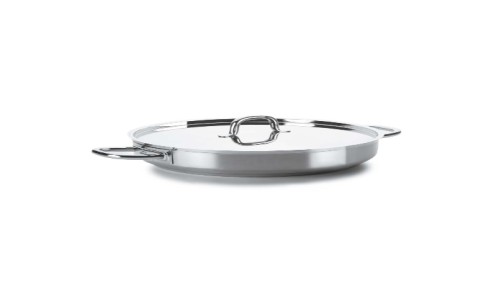 La totalidad de la pieza (cuerpo, asas y mangos) está elaborada en acero inoxidable 18/10.